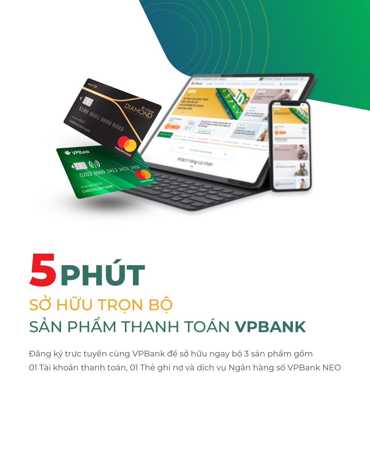 Chỉ trong 5 phút, sở hữu trọn bộ, sản phẩm thanh toán VPbank